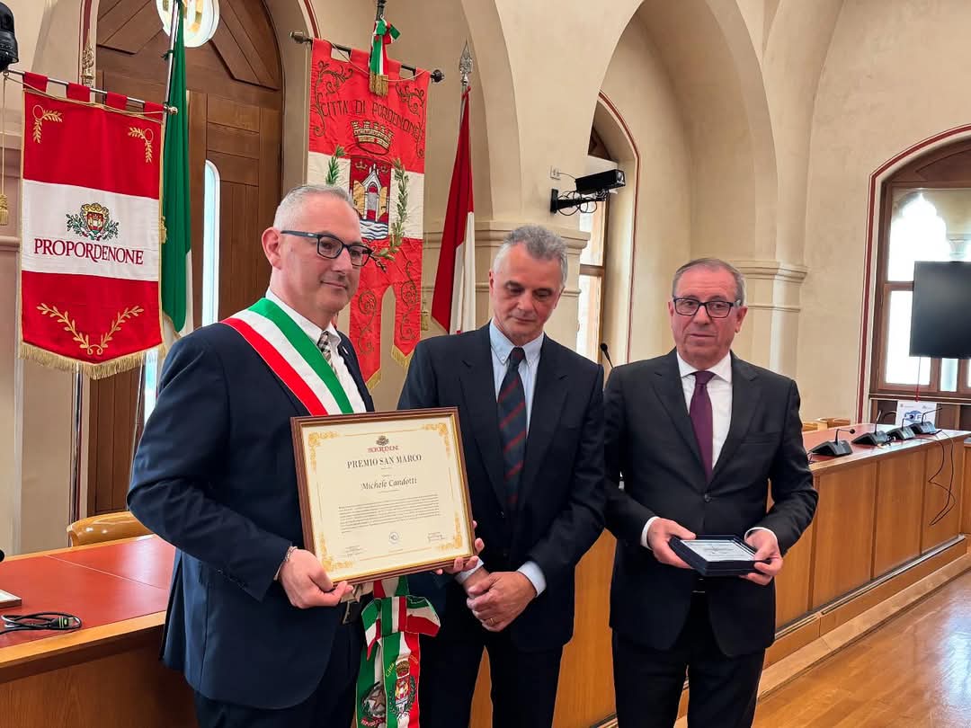 Oggi 25 aprile 2025 a Pordenone è stato conferito al collega Michele Candotti Dottore agronomo il Premio San Marco.